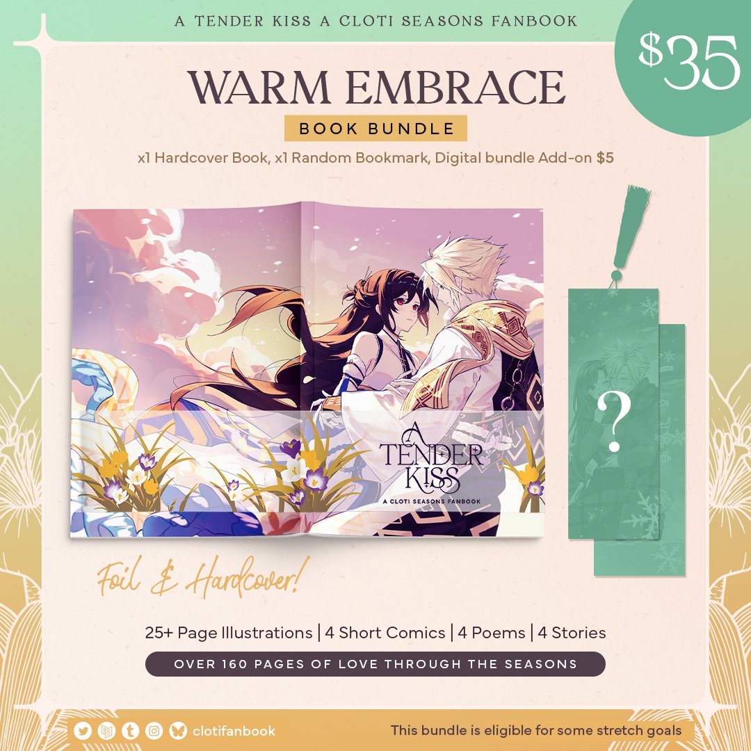 A Tender Kiss is a for-profit, SFW fanbook celebrating CloTi’s love throughout the seasons. The project will showcase their gentle and intimate romance with the help of illustrations, comics, fics, poetry, and merch. After covering for production and shipping, all remaining proceeds will be evenly distributed among our contributors and mod team.
